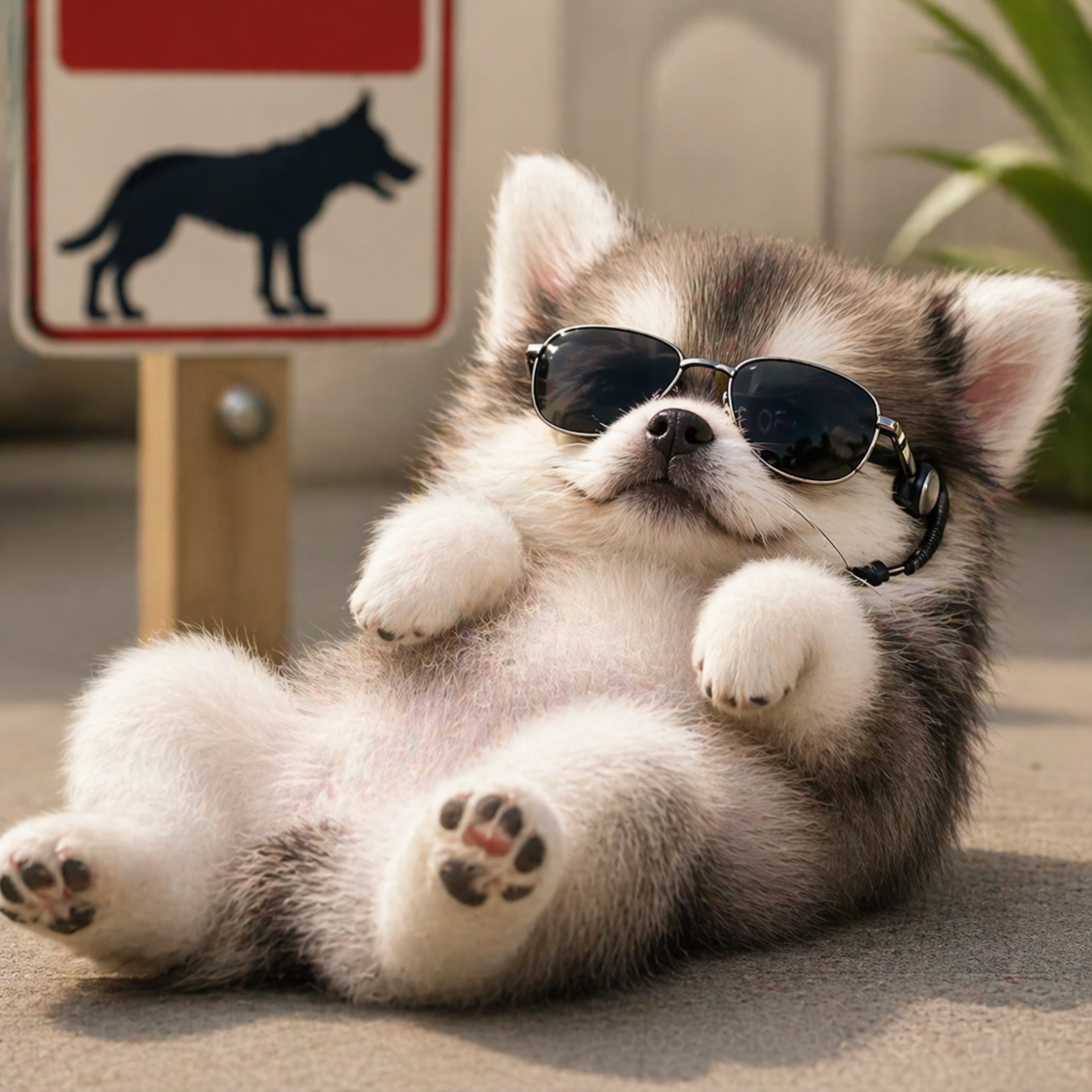 Trained at the highest level. Stationed at the most secure locations on earth. Currently lying on his back. Paws up. Sunglasses on.